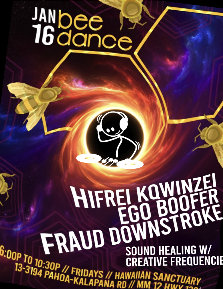 Welcome to Bee Dance – Puna’s underground conscious dance gathering happening every Friday night at Hawaiian Sanctuary on the Big Island. Born from the heart of the Big Island’s dance culture, Bee Dance offers a unique alternative to ecstatic dance. Rooted in intentional movement, sound healing, and sacred community, Bee Dance invites you to connect through rhythm, expression, and ceremony under the Hawaiian stars. Whether you’re a local or visiting the island, this weekly Puna dance event is your invitation to move, heal, and be.