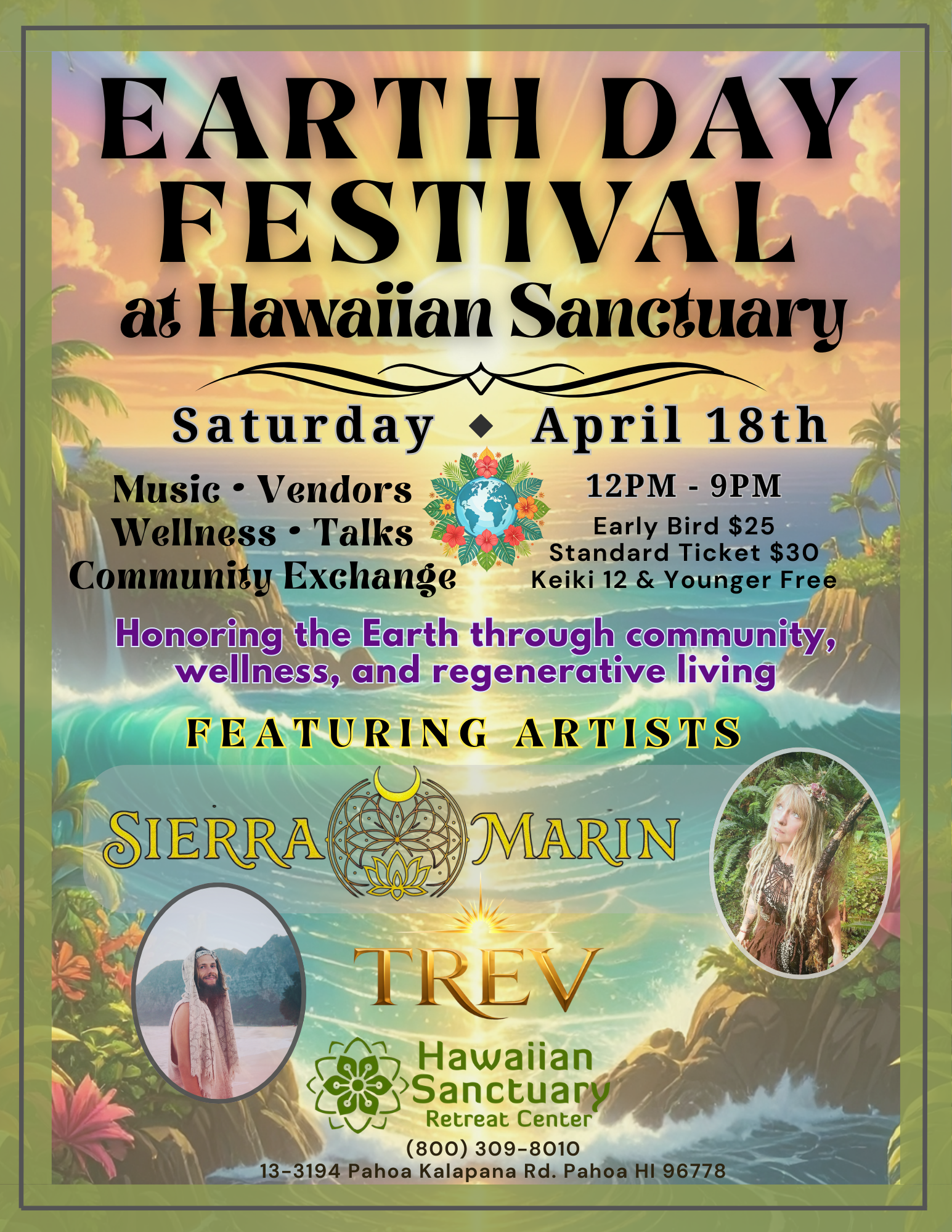 Join us on the Big Island for a full-day Earth Day Festival at Hawaiian Sanctuary, celebrating our connection to the Earth through music, wellness, education, and community.